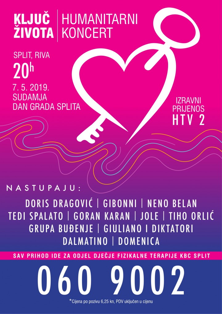 Glazbena mladež Split uz podršku Grada Splita, Turističke zajednice grada Splita, Hrvatske glazbene unije, HDS – ZAMP-a, Hrvatskog Telekoma, HRT-a i Euro Contega organizira humanitarnu akciju Ključ života za uređenje Dječje traumatologije Odjela fizikalne medicine KBC-a Split.